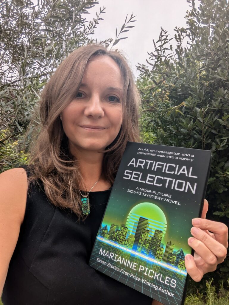 Author of mystery novels set in the future