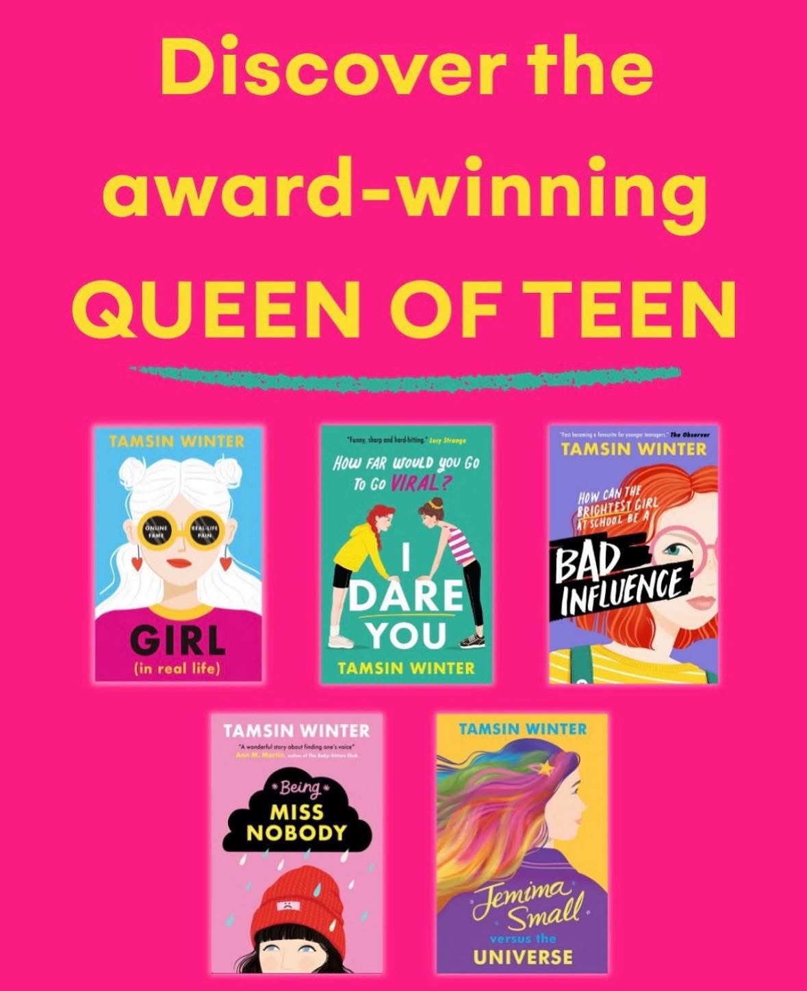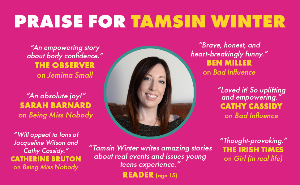 Known as the Queen of Teen, Tamsin Winter is a multi-award-winning author who writes fresh, funny and heartfelt fiction for readers aged 10+. Tamsin grew up in a Northamptonshire village where she spent her childhood reading books and writing stories. She studied English literature and creative writing at university, and worked as an English teacher for many years. Tamsin’s debut novel Being Miss Nobody won multiple awards including the Awesome Book Award, the Brilliant Book Award, and the Leicester Teen Fiction Book of the Year. Tamsin’s second novel, Jemima Small Versus the Universe was shortlisted for the Waterstone’s Children’s Book Prize and nominated for the Carnegie Medal. Tamsin is “fast becoming a favourite for young teens” (The Observer). Her fourth novel, Bad Influence, has been selected for the Reading Rampage Award 2024. Tamsin’s latest novel, I Dare You, was the Observer’s YA Book of the Month and has been shortlisted for the Spark! Book Award 2026, Peters Books Teen Book of the Year, the GDST Book Award, as well as multiple regional awards.